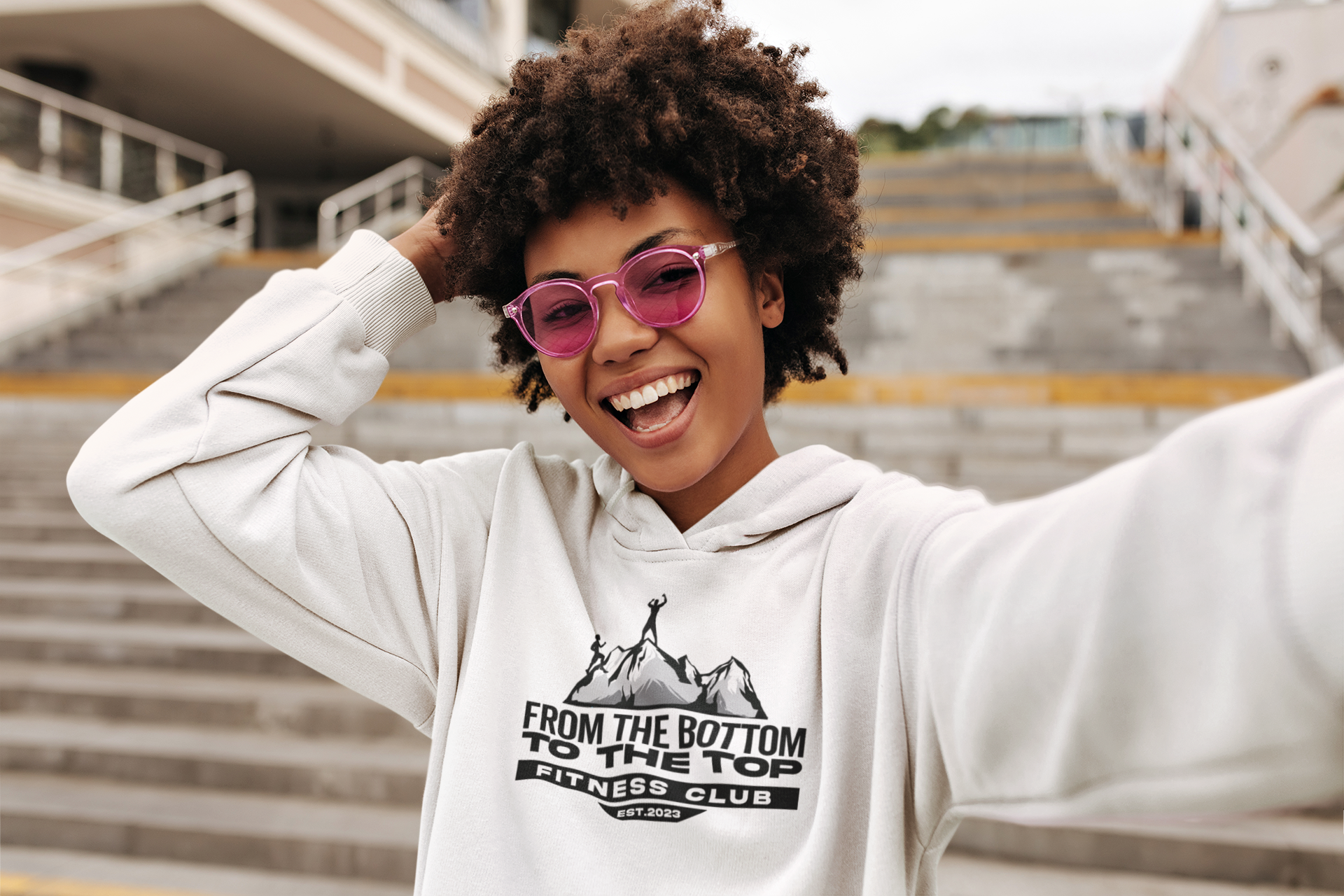 Stay warm and motivated during your workouts with the “From The Bottom To The Top Fitness” Logo Hoodie, a stylish and functional addition to your activewear collection.